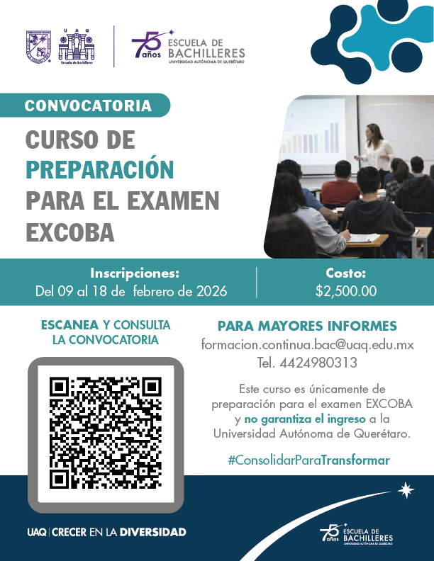 ¡Bienvenido a la página de la Escuela de Bachilleres de la Universidad Autónoma de Querétaro! Aquí comienza una de las etapas más emocionantes de tu vida, llena de nuevos retos y oportunidades. En este sitio, encontrarás todo lo que necesitas para formar parte de nuestra comunidad, desde información detallada sobre nuestra oferta académica hasta las fechas clave de convocatorias y los eventos más importantes.